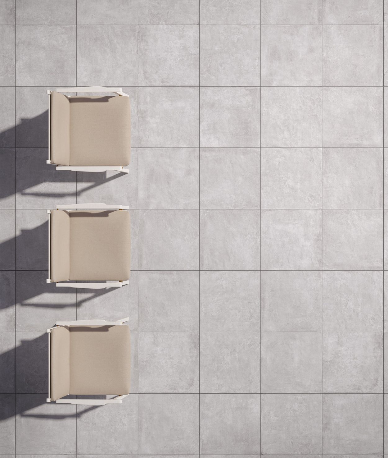 Grey porcelain stoneware is extremely easy to maintain, requiring only clear, hot water and a cloth to clean. Stains remain on the surface of the tile thanks to the almost non-existent porosity of grey porcelain stoneware. If necessary, deep cleaning with a professional product is permitted.