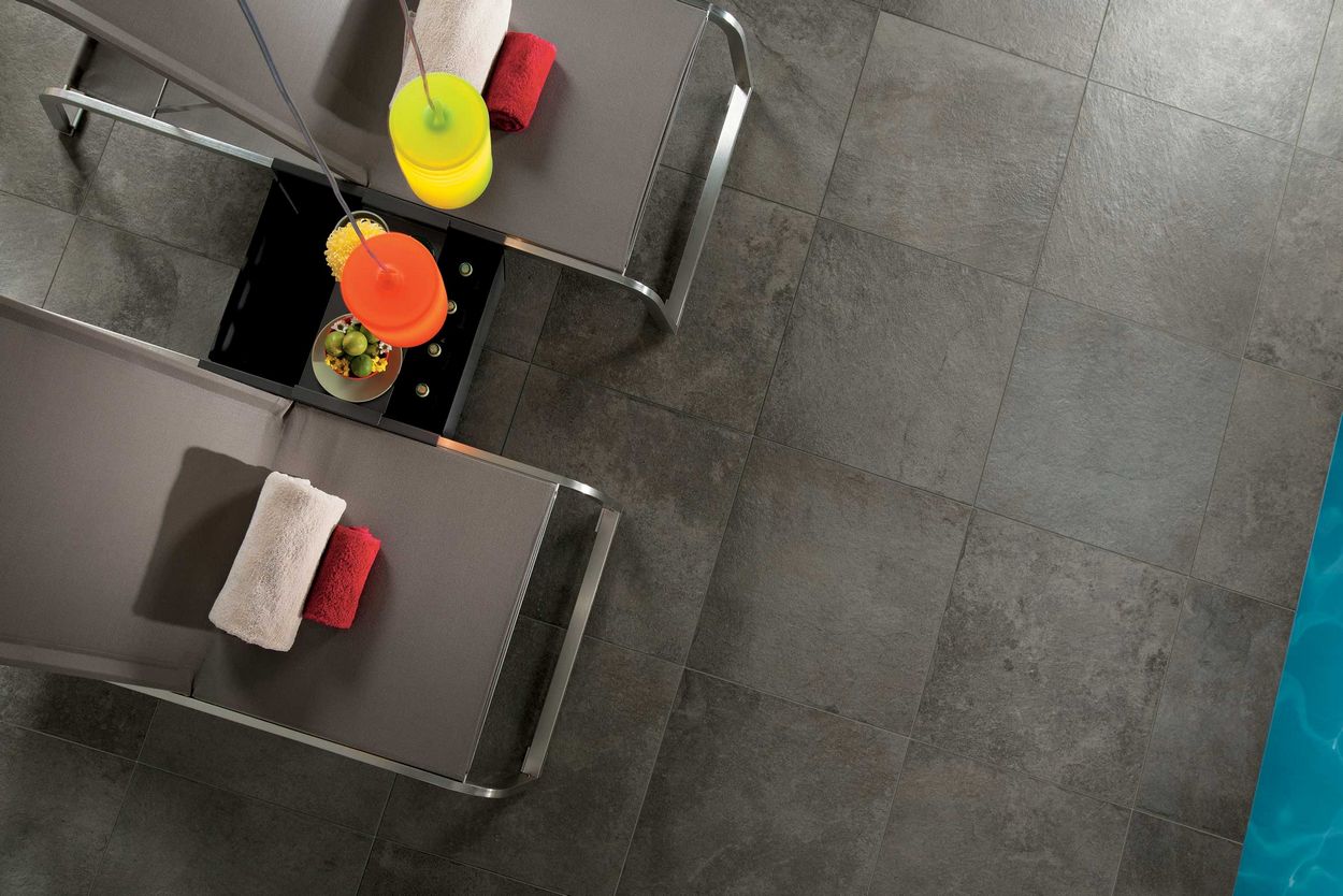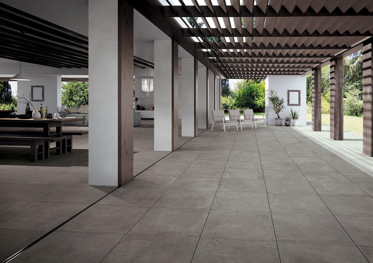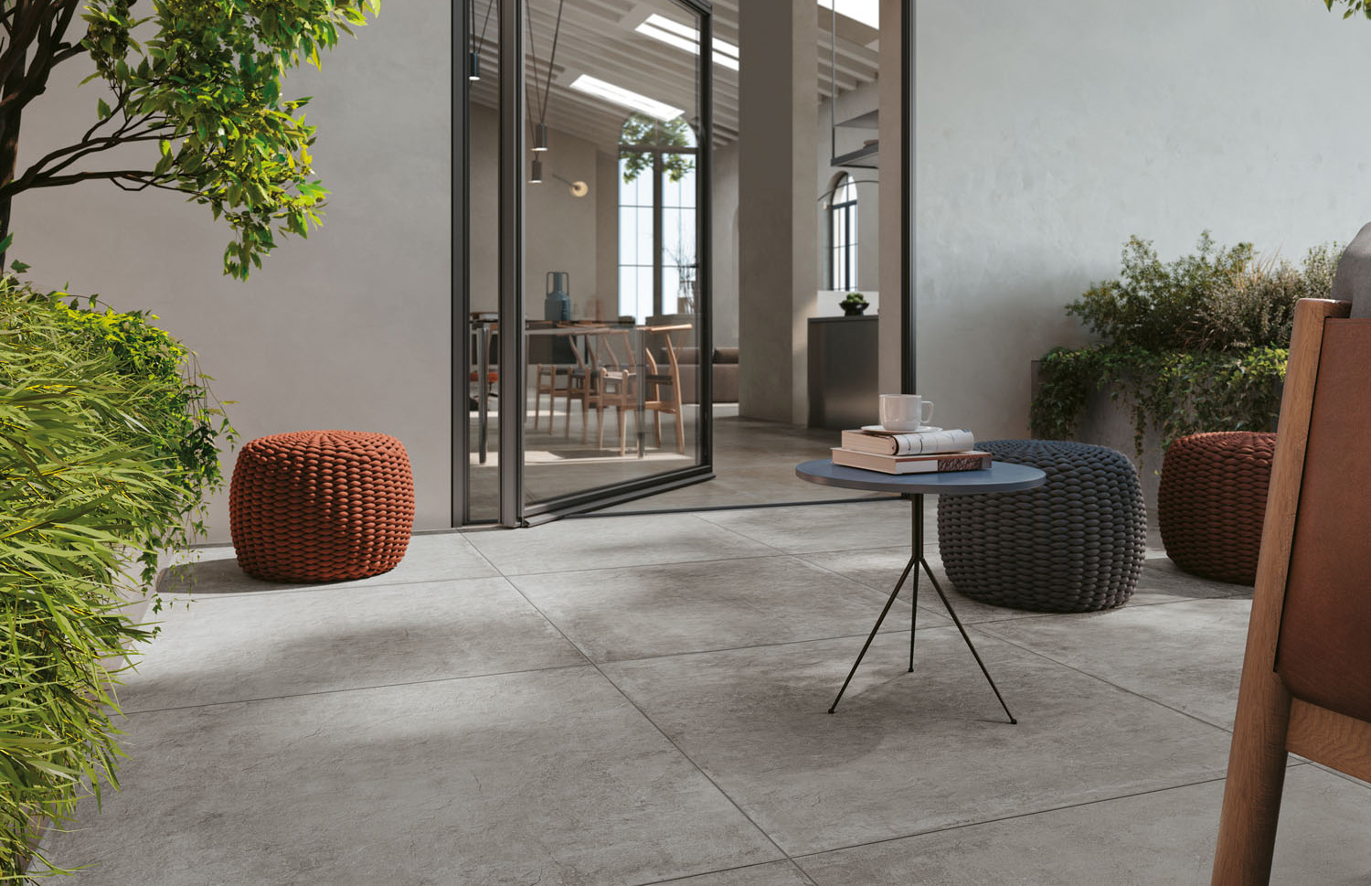 The grey tile is a classic yet modern colour that easily lends itself to a number of interpretations. Its chromatic intensity varies subtly from light to dark grey, and its most subtle nuances are destined to sublimate our indoor and outdoor spaces. Grey tiles therefore have everything to please and are in with the times. What’s more, grey porcelain stoneware tiles don’t make dirt stand out, but on the contrary, hide it. This makes it a firm favourite as a floor covering. Since it is suitable for so many uses, indoors or out, all your environments can take on a soothing, trendy appearance and grey porcelain stoneware thus offers the possibility of achieving aesthetic continuity between indoors and outdoors.