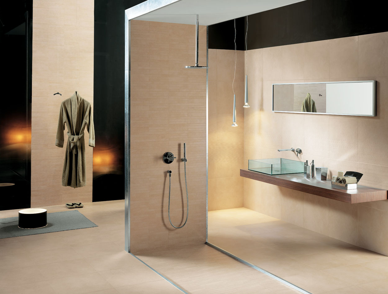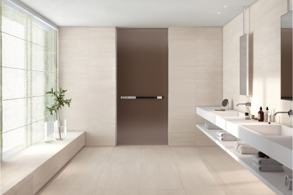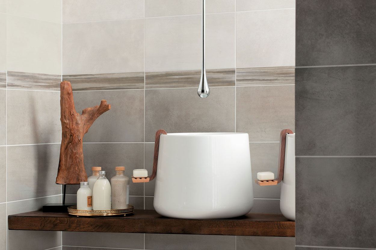 In terms of colours, ceramic tiles offer a wide range of decorative possibilities. The classic choice is often beige or white tiles for bathroom, both of which have the ability to reflect the natural light of the room and therefore make it brighter. In addition, they give an impression of hygiene and cleanliness that perfectly echoes the atmosphere of the room. If the aim is to support the feeling of serenity that this water room offers, grey bathroom tiles accomplish this task admirably because their many shades, from the lightest to the darkest, are all delicate.