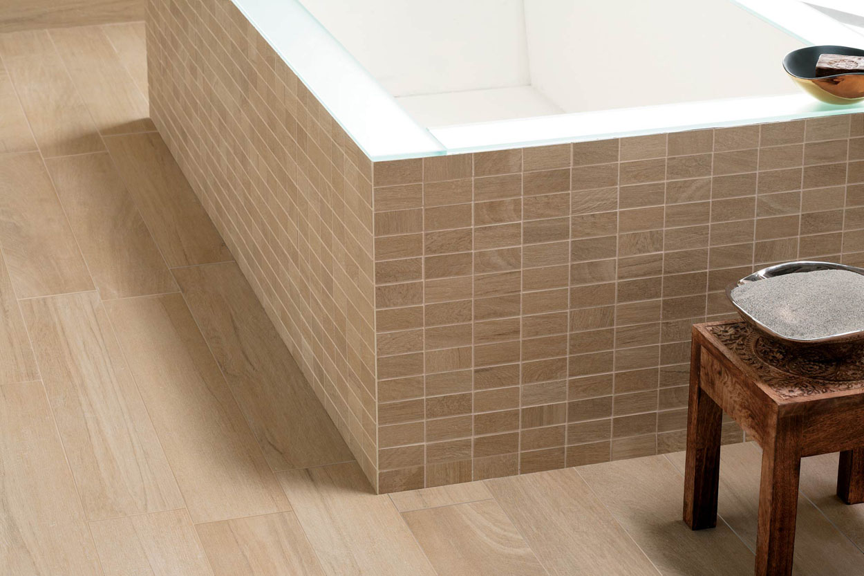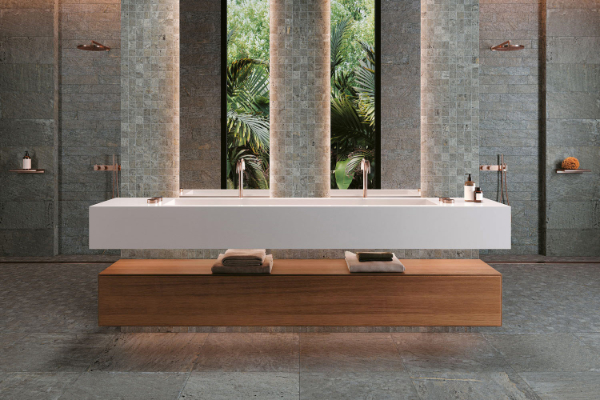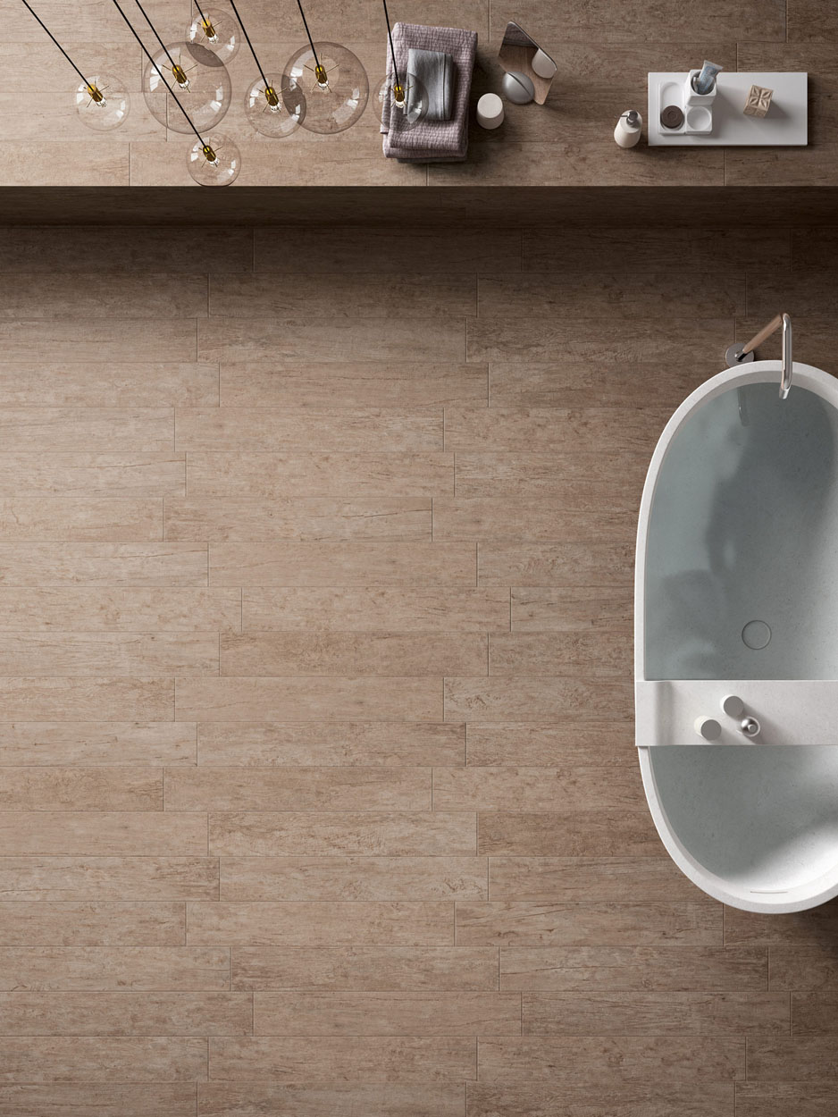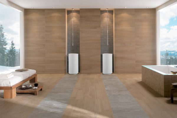 Firstly, Novoceram draws its inspiration from natural materials such as wood and stone, which are at the origin of the creation of many ceramic tile collections. The reproduction of these elegant and precious materials are accurate because even the irregularities that are part of the DNA of wood and stone are present on the surface of porcelain stoneware tiles. Thus, the wood and stone effects, being a true ode to nature, are becoming increasingly popular thanks to the robustness of porcelain bathroom tiles. Indeed, these natural materials, which are sometimes not recommended for damp environments, have a look that does not require any specific treatment here, since the tiles are made of ceramic porcelain stoneware.