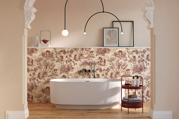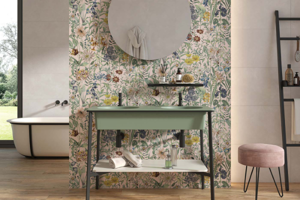 It is also possible to consider wallpaper effect tiles which, unlike traditional wallpaper, do not deteriorate in humid environments. You can therefore decorate your walls with ceramic wallpaper without any fear. Between geometric, cheerful or elegant patterns, bathroom ceramic tiles create real works of art on your walls to define an artistic style.