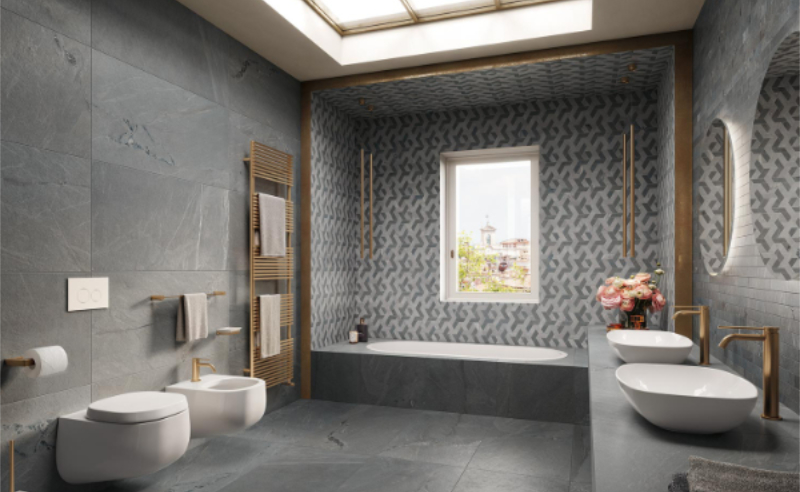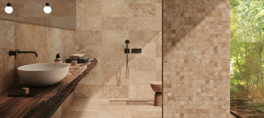 Although it may seem obvious, porcelain bathroom tiles are not affected by water and humidity. Their aesthetic effect, whether inspired by wood, stone, cement tiles or marble, remains intact in the damp environment of your home.