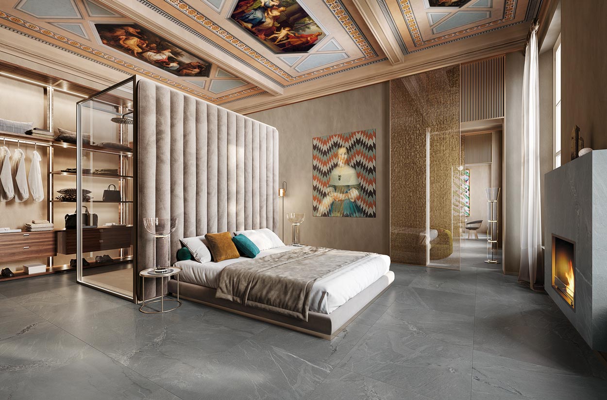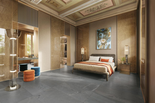 The many aesthetic effects of tiles for bedroom can be used to enhance both floors and walls. Thanks to the vast range, it is possible to create an accent wall, decorative friezes on the floor or even a transition with a bathroom in the master bedroom.