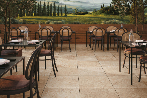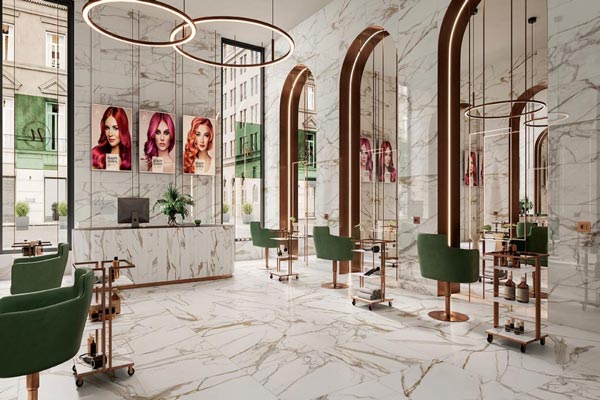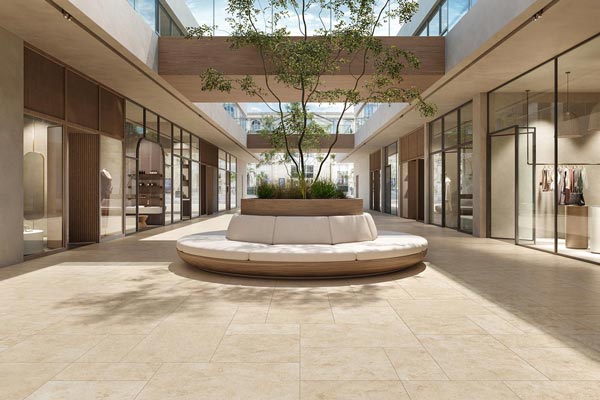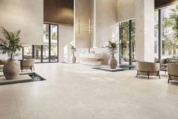 Elegant and sophisticated aesthetics : the large size creates a luxurious visual effect that fits well into busy spaces such as shops, hotels and restaurants. Large-format porcelain tiles contribute to give commercial premises a feeling of greater breadth and continuity of space.
