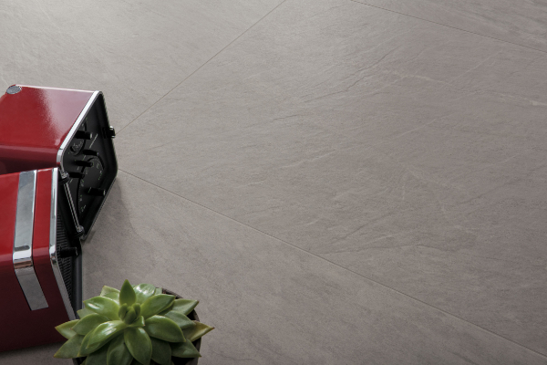 Finally, garage porcelain tiles replicate the look of resin with its soft nature. Often used within industrial buildings, this effect echoes the functionality of the flooring and therefore emphasises the function it plays in this area. This faithful reproduction reflects the neutral character of the resin and blends in perfectly with the space.