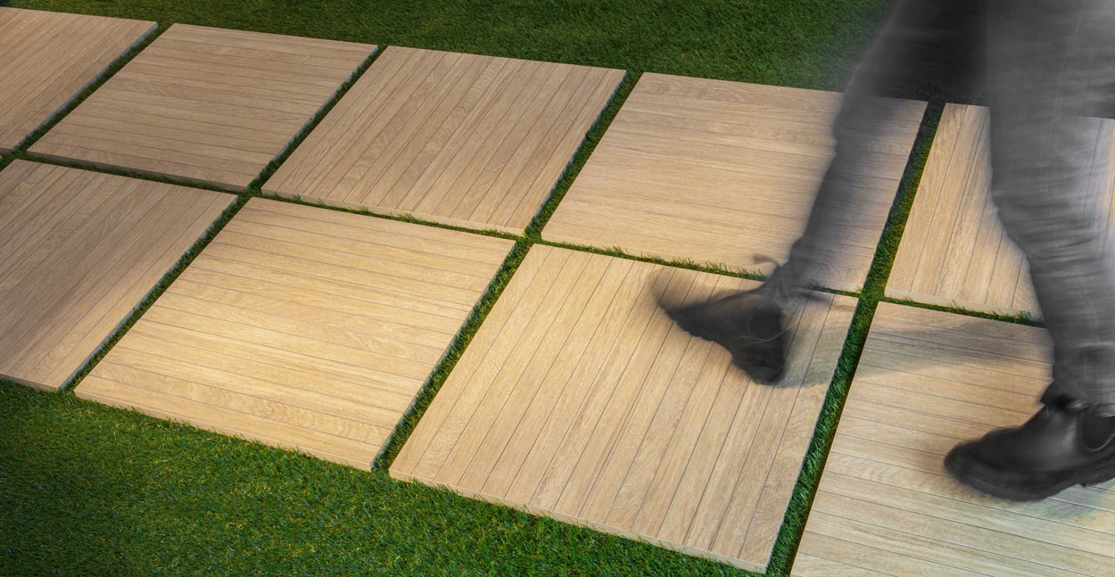 Novoceram has developed a wide range of colours for porcelain garden tiles to suit every style of outdoor environment. For example, you can choose a light colour, such as beige or ivory, which shows a delicate softness. However, for outdoor environments with a strong character, darker colours can be considered, such as black or brown tiles. Of course, for an all-purpose tile, it may be advisable to turn to a grey tile, as its many shades can enhance any decor.