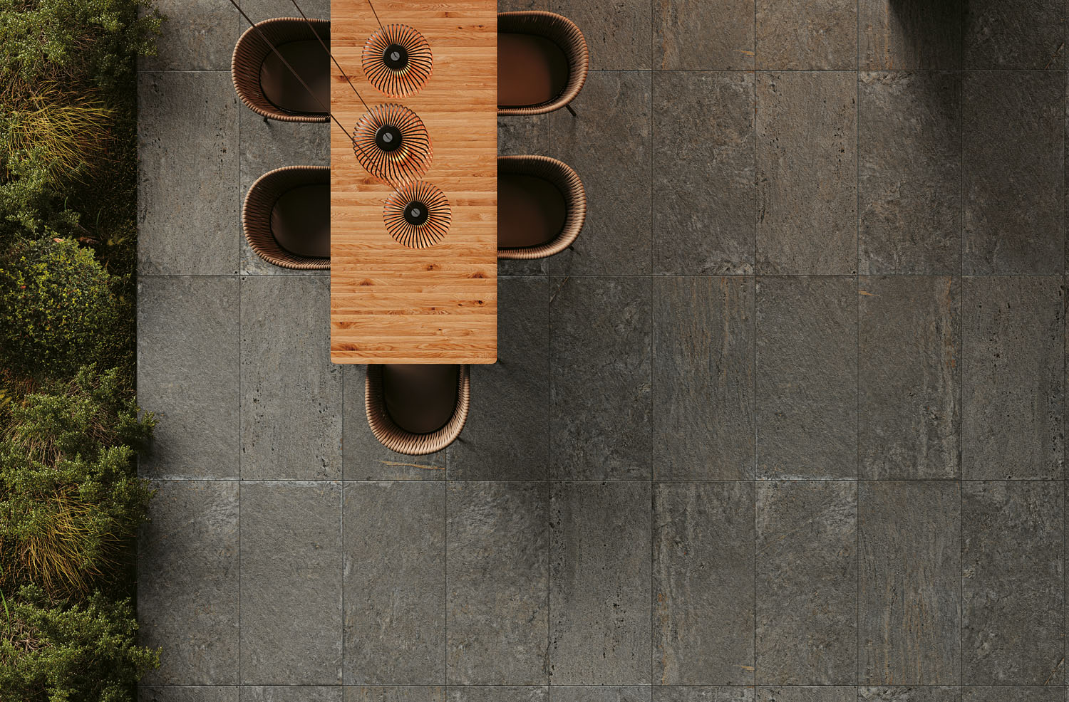 Finally, if you want a Mediterranean setting that evokes sunshine and idleness in your outdoor space, terracotta effect tiles instantly immerse you in the atmosphere of those magical places that remind you of holidays. Novoceram reinterprets it in a contemporary way, offering more neutral colours without losing the authenticity of the terracotta.