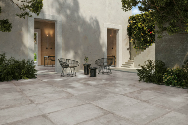 Secondly, it is possible to opt for modern-inspired garden porcelain tiles if the desired result is more contemporary. Ceramic tiles for garden can take on a more designer look and thus be a perfect match for clean, modern or even industrial atmospheres. In this case, the choice can be made for a concrete effect tile which appears neutral and sober at first glance. On the contrary, it constantly reveals graphic details such as small cracks or scratches that characterise the cement surface. For an ultra-trendy ambience, designer tiles with a pure style are a must. Its identity is unmistakable and it blends in wonderfully with all styles of decoration to which it adds a touch of elegance.