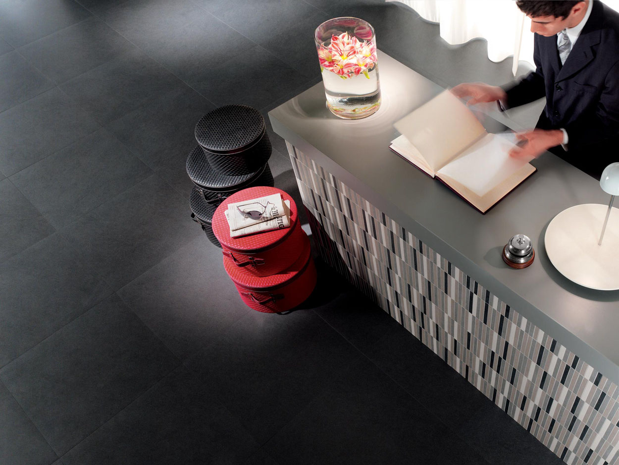 Whether the establishment is a guest room, a bed & breakfast or a luxury hotel, the colour of the tiles helps to define the atmosphere that characterises it. So, for a soberer result, it may be worth considering fairly neutral colours, such as grey and its rich shades for example. From light grey to anthracite, grey hotel tiles can easily be combined with various decorative elements. Another style can be developed with beige or ivory tiles, which emphasise natural light and warm the atmosphere.