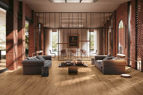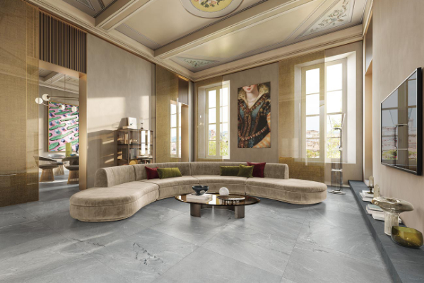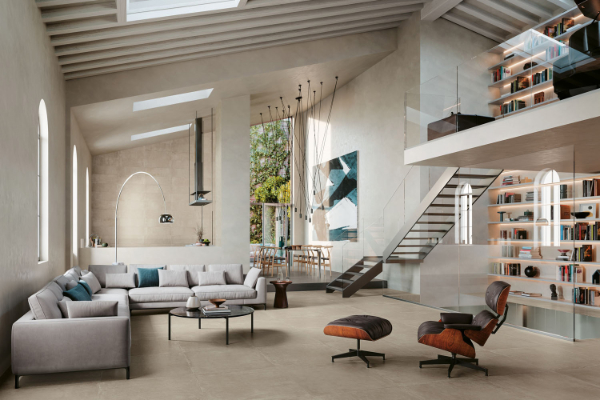 Porcelain stoneware tiles have a multitude of advantages leading them to become a favourite among various floor and wall coverings. Thus, this material is perfectly suited to the living room, which is often crowded and requires a robust and resistant floor.