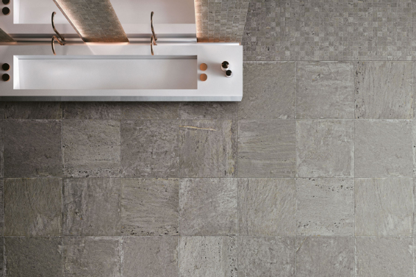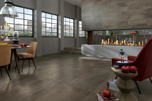 The coloured body ceramic stoneware tiles can also be given a more modern look. Imitation concrete tiles, designer tiles and metal-effect porcelain tiles belong to this category. The cement effect never disappoints with its highly worked surface and helps to shape a decoration with industrial accents. The design tiles, on their part, beyond their intrinsic modernity, mark original and singular spaces. Indeed, each collection has a unique aspect that makes it almost indefinable. Finally, the imitation metal tile brings a little more to it in view of its countless metallic reflections that dress the surfaces with style.