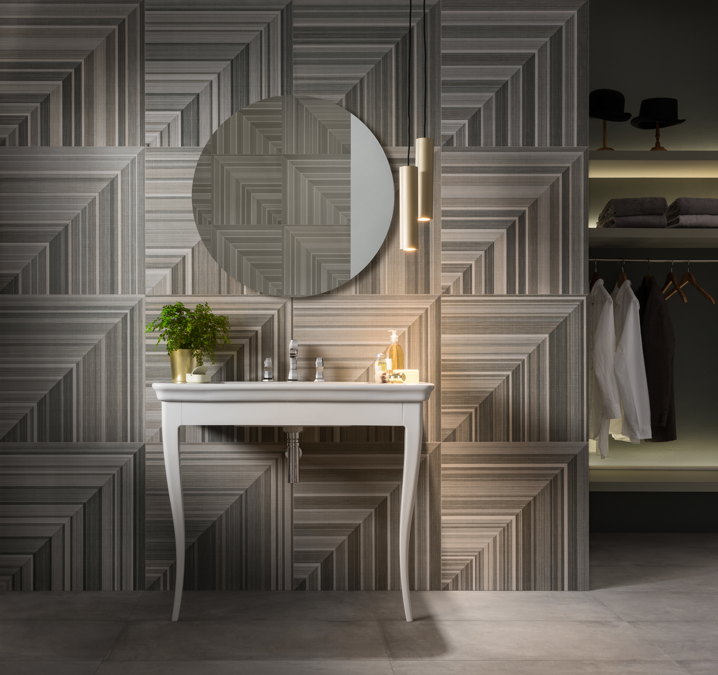 Another way of decorating a space is to consider ceramic wallpaper. This is characterised by pleasing patterns and nuances. Graphic effects and other geometric shapes are all the rage in any environment, be it contemporary or more classic.