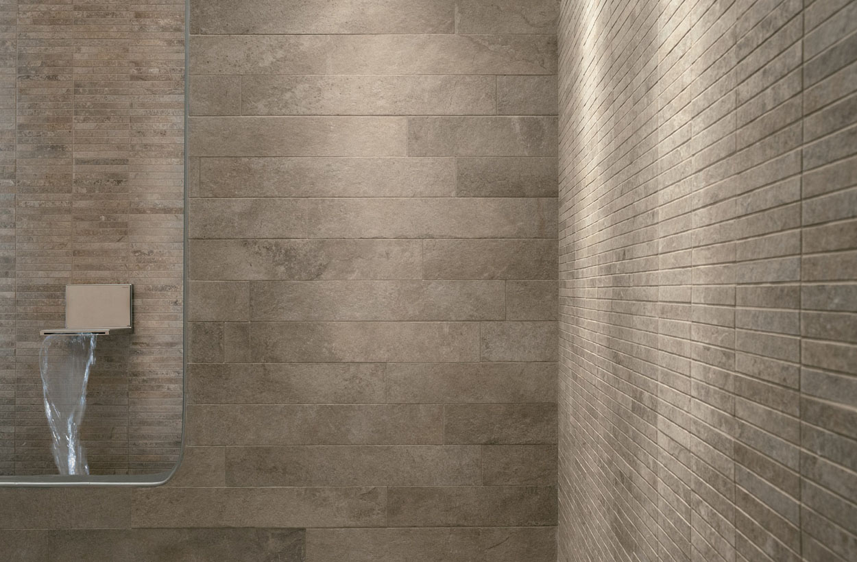 The irregular, grainy textures and veining typical of stone are, when combined, synonymous with strength, elegance and personality. In this way, imitation stone tiles bring a new style, but also a new soul to a space. It’s an aesthetic of great realism and refined simplicity, reflected in the rich finishes of the 15×1.875 tiles. Enriched by the creative proposals of the mosaic, the stone effect bears witness to a creation of time and its extraordinarily natural appearance varies from tile to tile with the aim of presenting a faithful product that can be considered an artistic painting thanks to the contemporary allure of the stone and its three-dimensional effect.