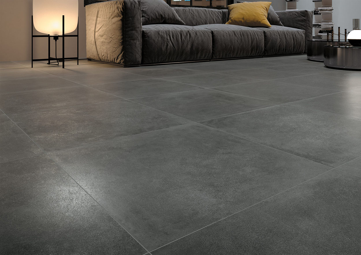 The concrete effect is also available, decorating porcelain stoneware with its raw charm. Neither too large nor too small, this format is sufficient to both highlight the details of the cement and decorate the room in which it is laid. Like cement, concrete-effect tiles are an obvious choice if you want to perfect a more industrial or contemporary style.