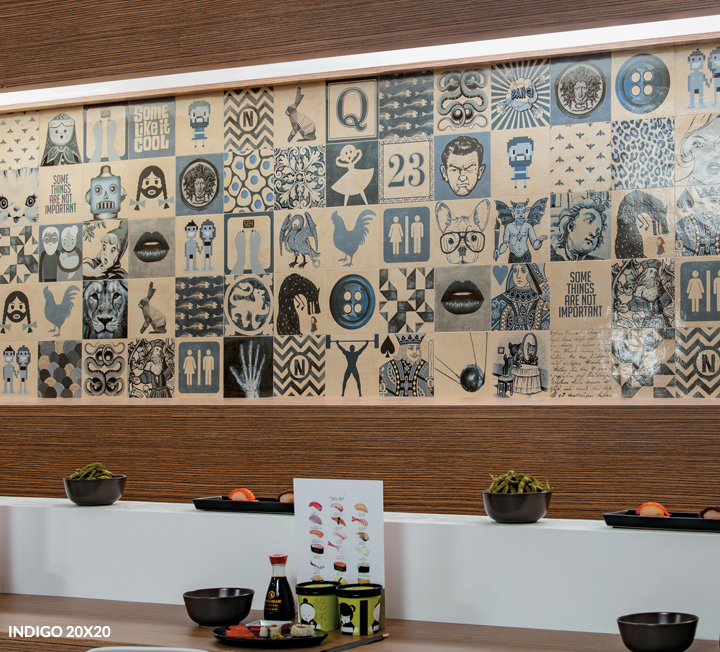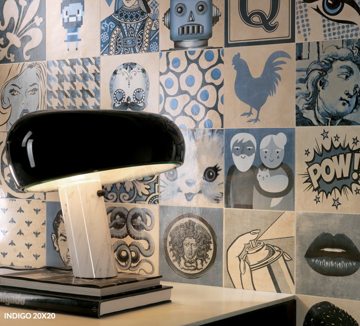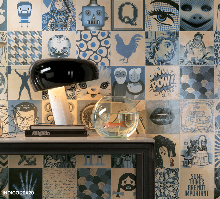 Tradition and materiality of Portuguese azulejos are re-interpreted to create a modern and elegant proposal. Indigo proposes 63 subjects mix, from different styles, through ten centuries of history.