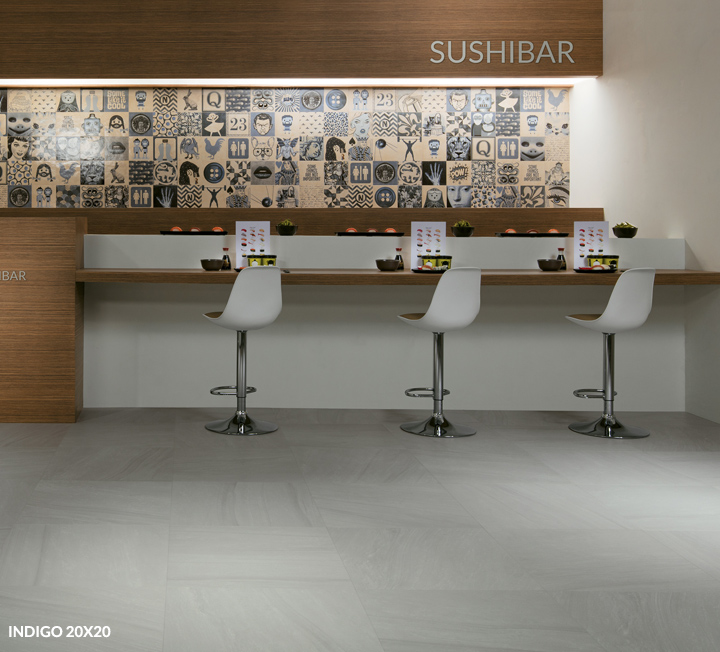 Porcelain stoneware azulejo tiles are traditionally laid on walls to embellish them with geometric patterns and bright colours. However, Novoceram’s collections of modern azulejos can also be laid on floors as they are made from porcelain stoneware. There is one exception, however: outdoor floors. In fact, they cannot be laid as outdoor flooring because azulejo tiles do not have sufficient anti-slip qualities to allow outdoor laying.