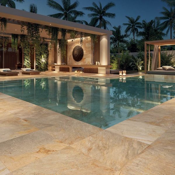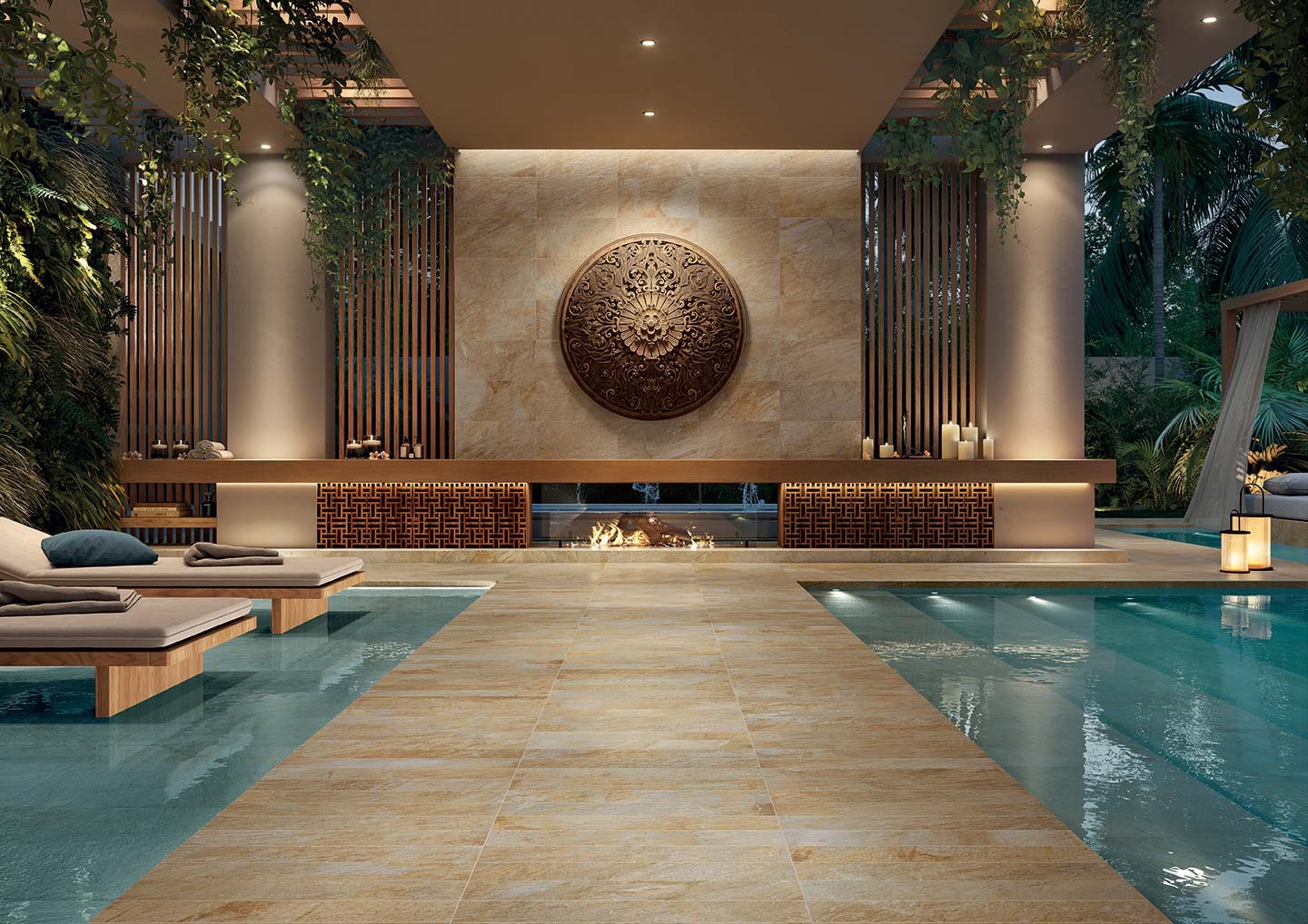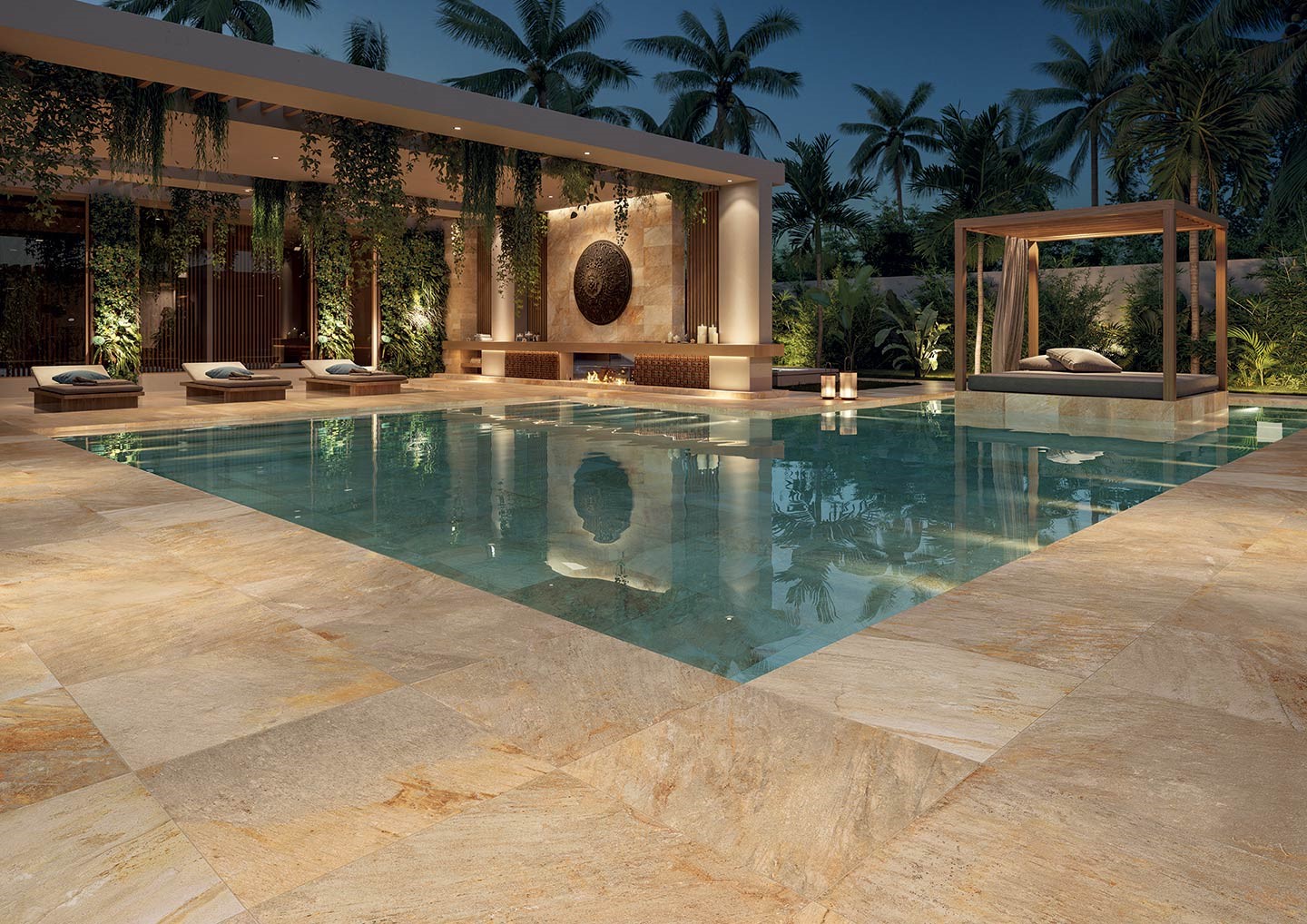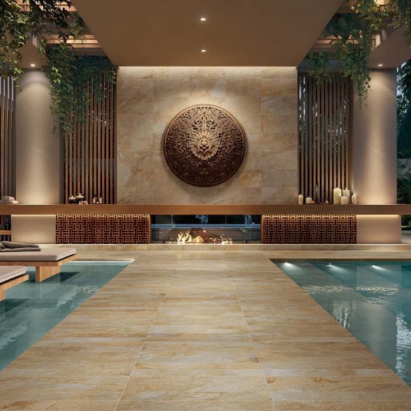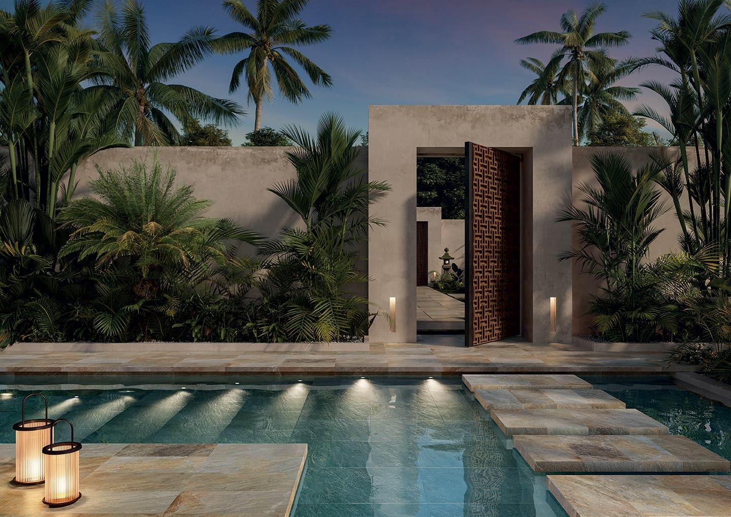 Bali stone effect tiles are primarily used to dress and decorate outdoor pools, especially because of their unique natural colors. Its heavenly orange and green reflections can indeed convey a Balinese look to any clear water. By laying a Bali stone effect tile at the bottom of your pool and around the edges, you will enjoy a lining worthy of the most beautiful Balinese infinity pools. To help you make your choice, Novoceram reveals all the secrets of this attractive Bali stone imitation tile.
