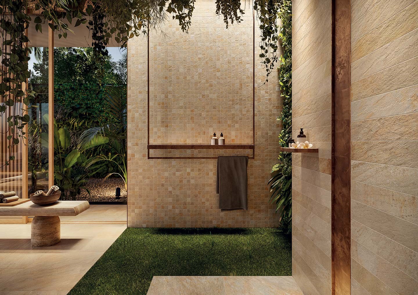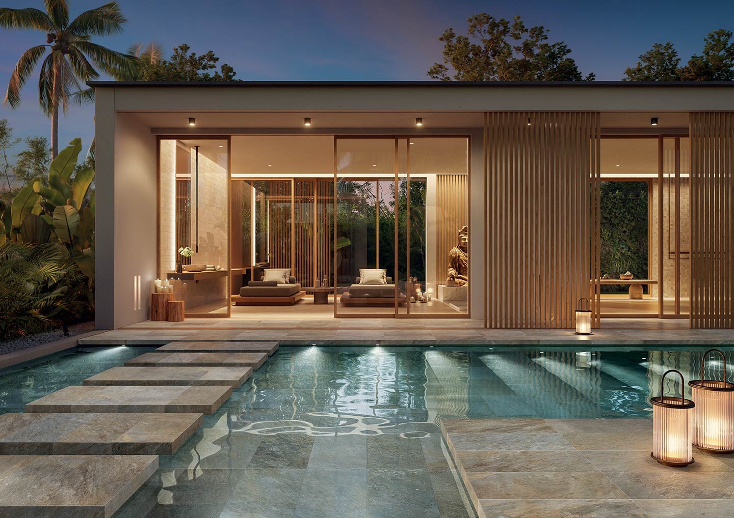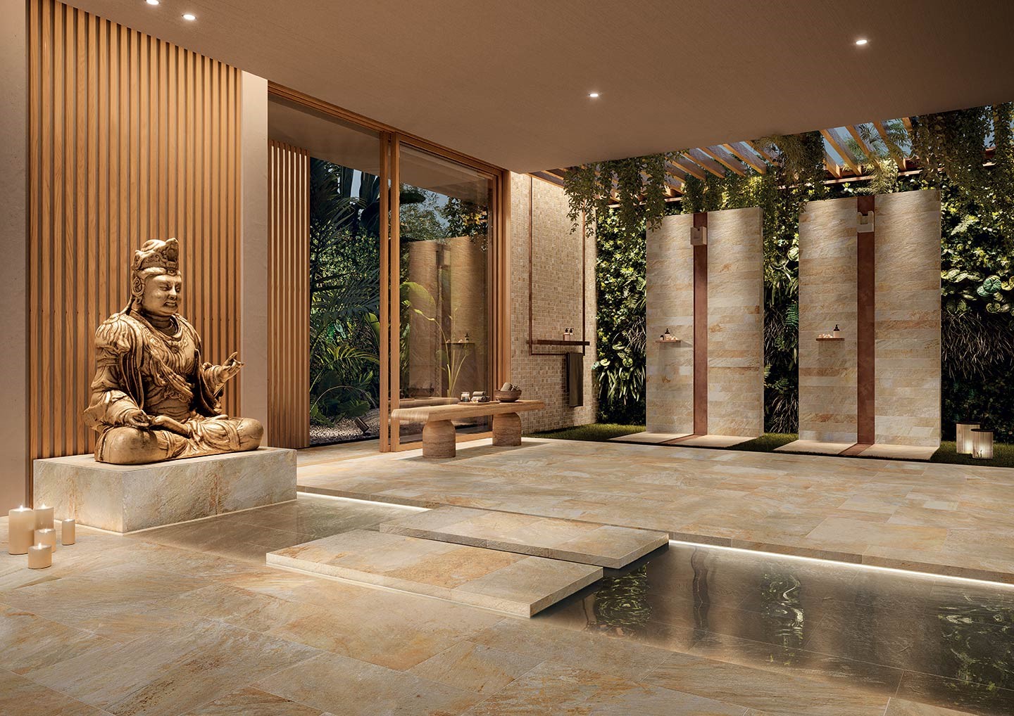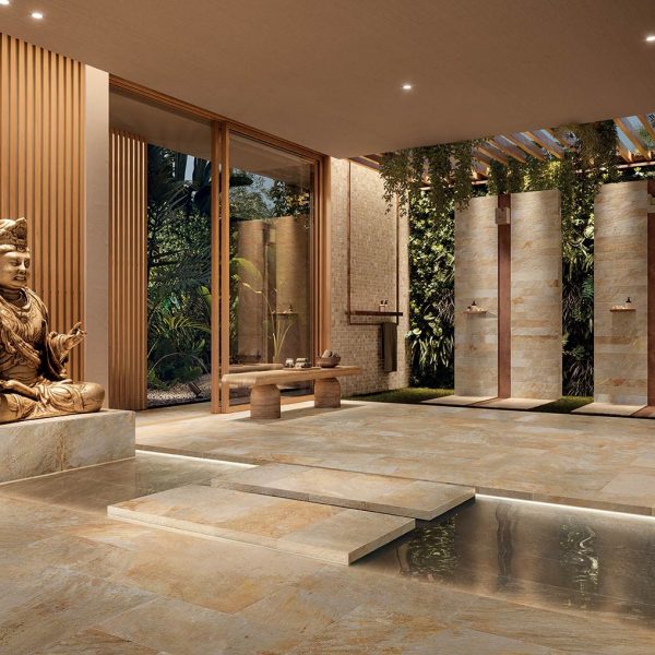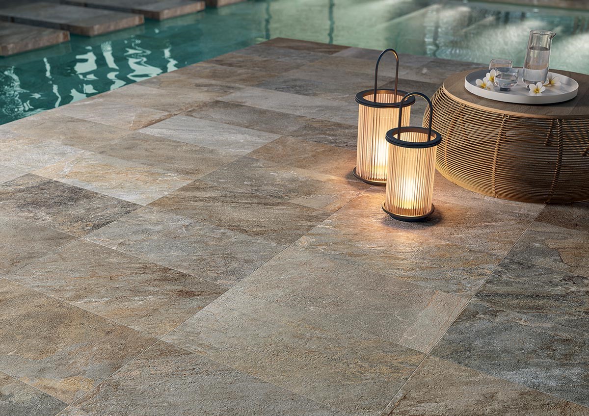 Bali stone effect tiles are primarily used to dress and decorate outdoor pools, especially because of their unique natural colors. Its heavenly orange and green reflections can indeed convey a Balinese look to any clear water. By laying a Bali stone effect tile at the bottom of your pool and around the edges, you will enjoy a lining worthy of the most beautiful Balinese infinity pools. To help you make your choice, Novoceram reveals all the secrets of this attractive Bali stone imitation tile.