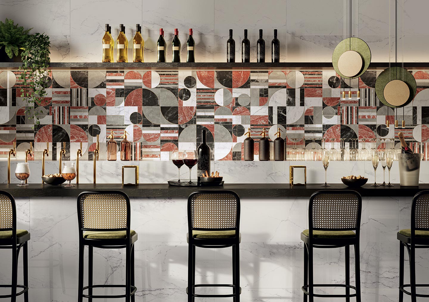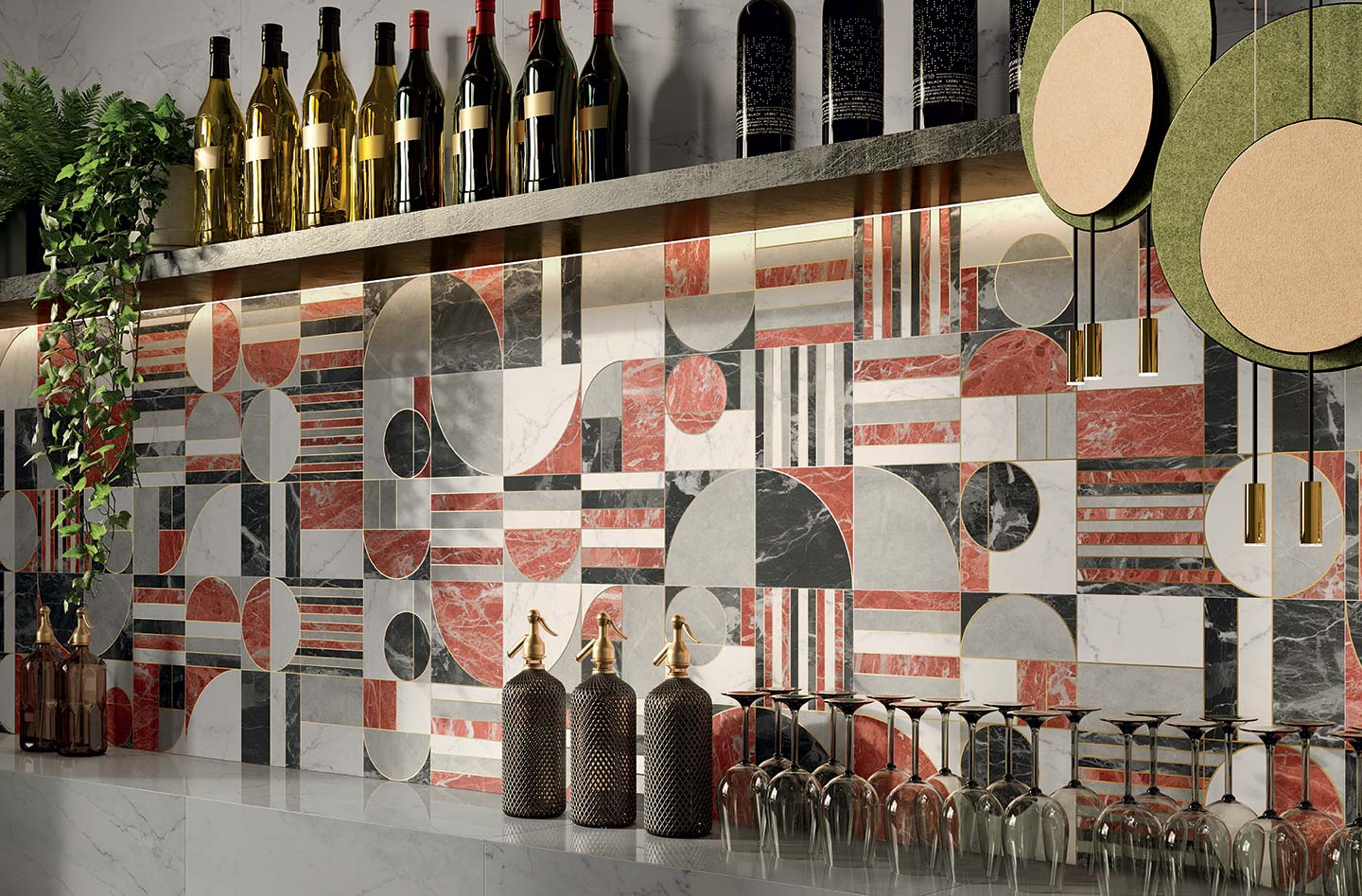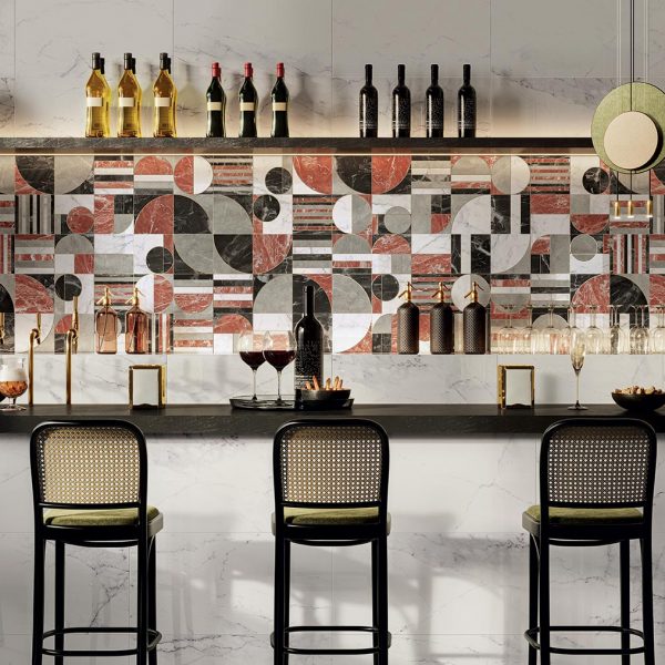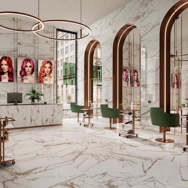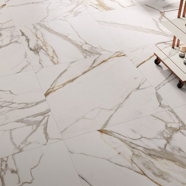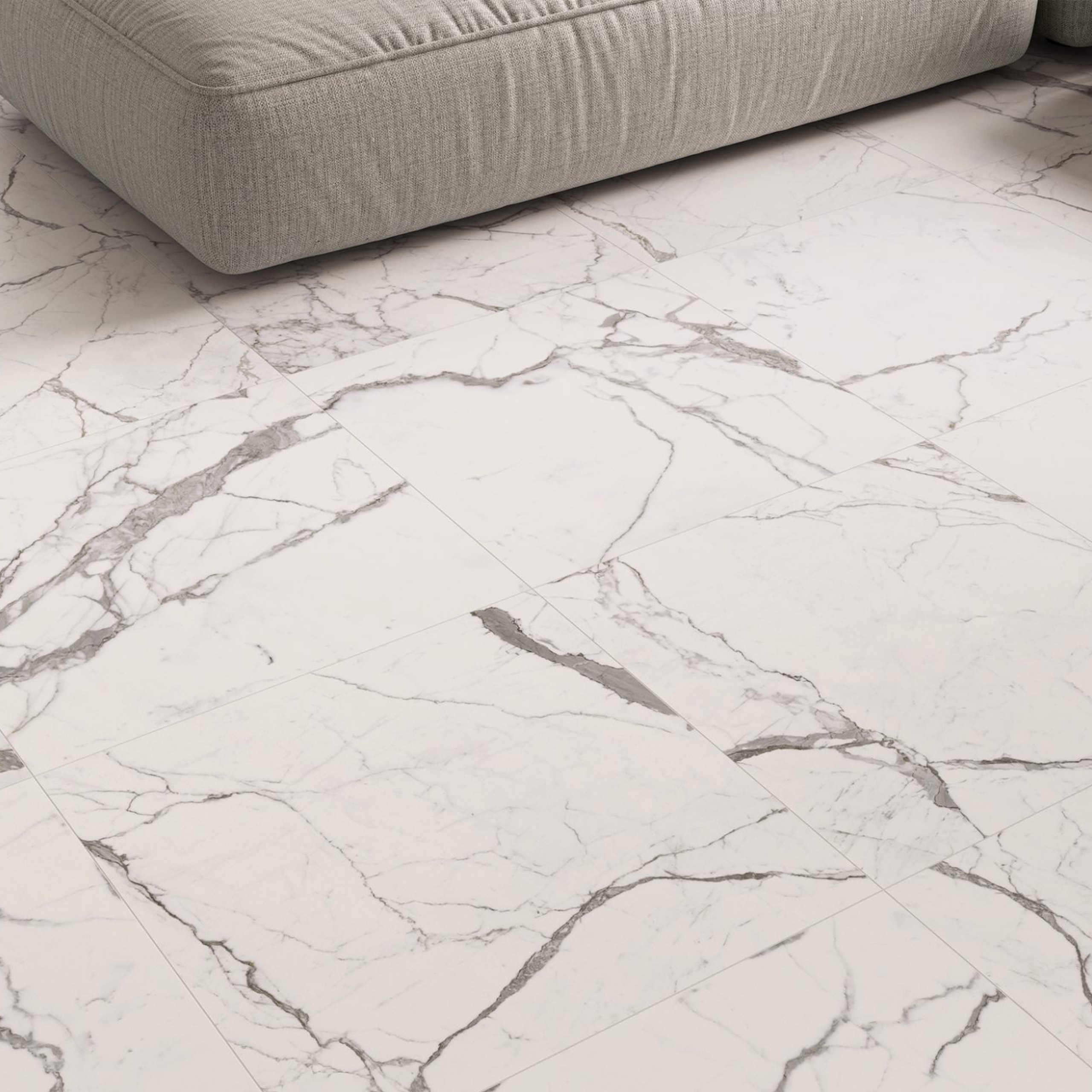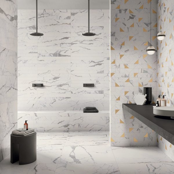 Marble is the noble stone par excellence: for centuries now, it has been used in the decoration of both private homes and public buildings; be it inside or outside, on the floors or on walls. Marble slabs were on the floors of Roman domus and paved the forecourts and naves of cathedrals. It is a luxurious and precious material (especially when cut in large format), very expensive and poses some constraints in terms of maintenance. Marble effect tiles are an ideal solution, since they combine the technical advantages of ceramics (white body and, even more so, porcelain stoneware) with a very faithful reproduction of the different types of marble, down to the smallest detail.
