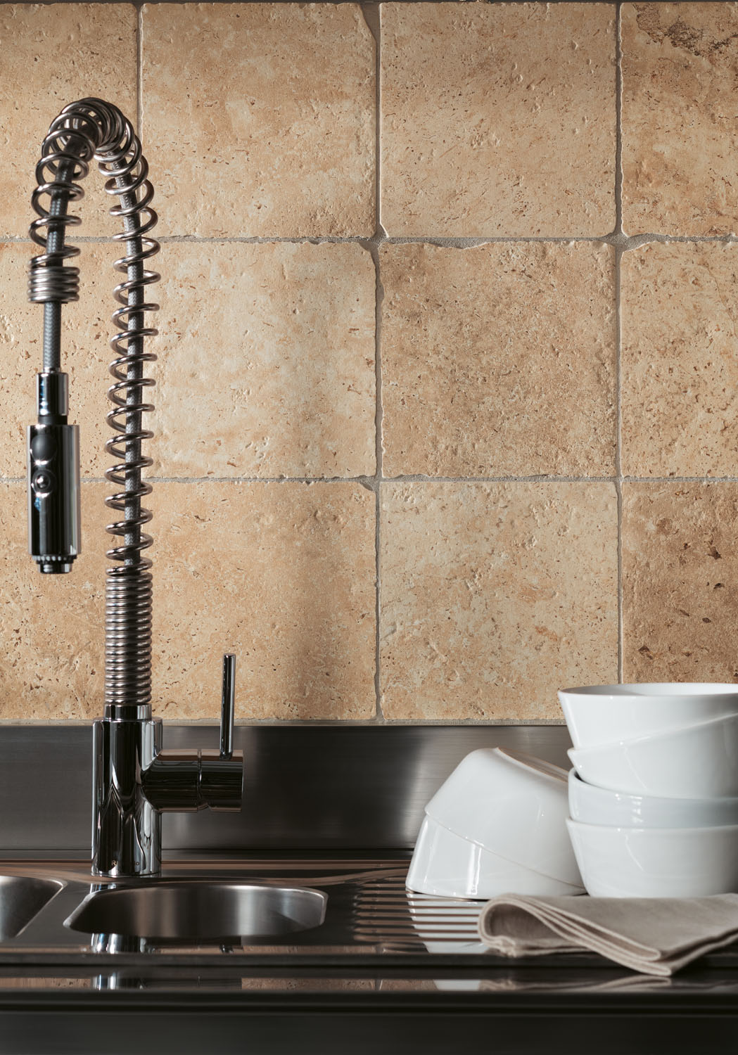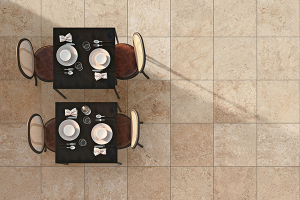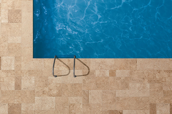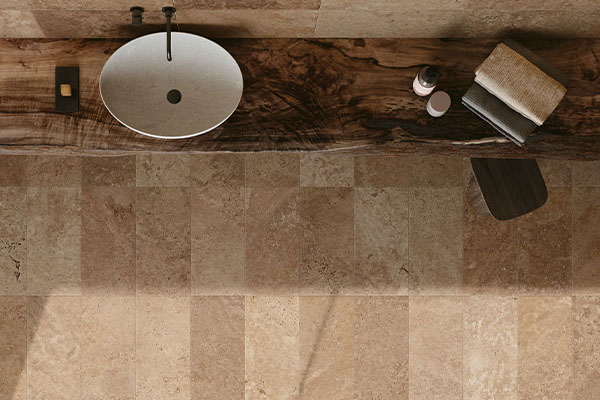 Secondly, it is possible for humid spaces to be covered with travertine effect porcelain tiles. Bathrooms and kitchens, despite their more frequent humidity, can be adorned with the look of this elegant stone since it is made of porcelain stoneware. This tile can even cover your pool area and give it a unique identity. Ceramic is, indeed, particularly adapted to this use thanks to its intrinsic qualities. Its resistance to humidity, steam and heat do not cause any deterioration of the tile.