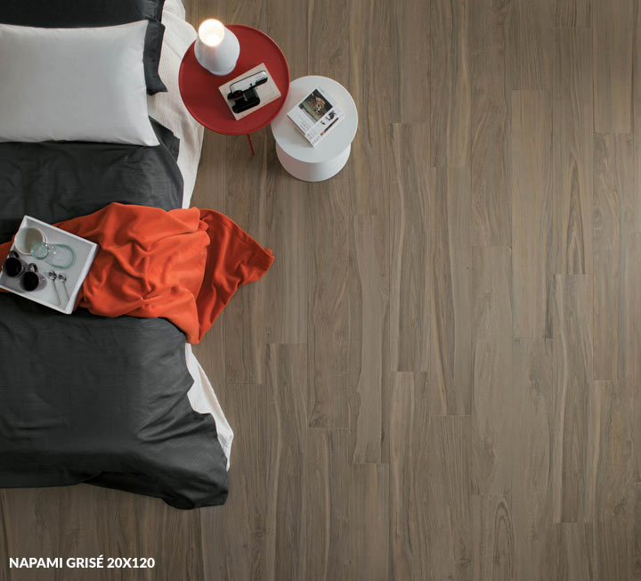 Wood effect tiles can be perfectly combined with all types of decoration. It brings a touch of nature to your space and can even become the flagship element of your decoration, whether it is Scandinavian, minimalist, contemporary or more traditional. Depending on the aesthetic effect you choose, ceramic parquet tiles can soften the atmosphere, but can also give a lot of character to your space, while making it extremely warm and friendly. Wood is a material that can be combined with many others such as metal or stone, for example. The latter can create surprising associations with wood effect ceramic tiles, which can be laid not only on floors but also on walls, and the result gives a contemporary and design look to your space.