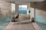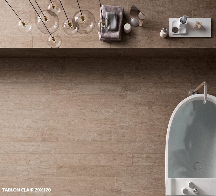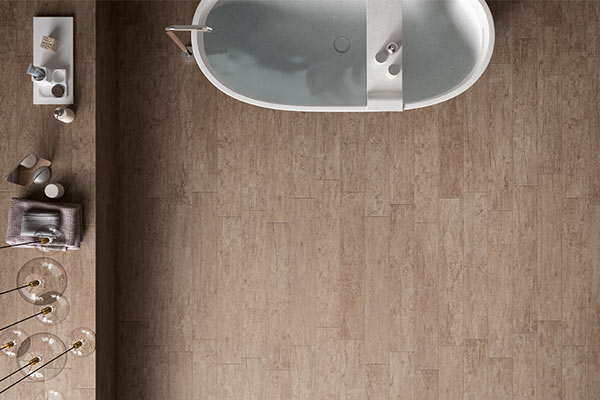 Natural parquet is a much appreciated material, but generally, its characteristics do not allow it to be laid in every space. It is actually not recommended to use it in wet areas due to its low resistance to humidity. Rooms such as bathrooms, kitchens or even swimming pools are often deprived of a warm and natural covering such as wood. However, wood effect tiles have a water absorption rate close to zero, and are therefore perfectly suited to areas with higher humidity.