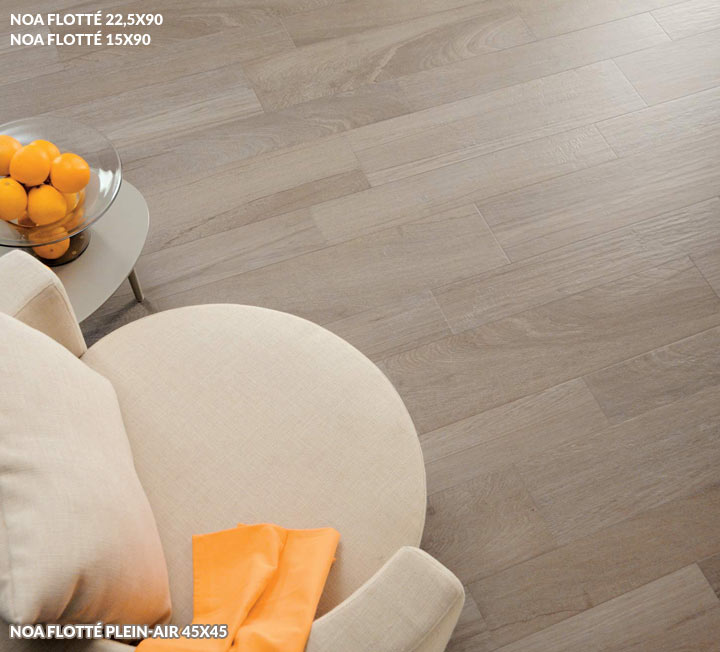 The wood effect tiles designed by Novoceram can be laid anywhere, both indoors and outdoors, without risking being damaged, thanks to its many technical qualities. Novoceram resorts to advanced technologies to create these wooden tiles that perfectly replicate the aesthetic aspect and special details that characterise wood. Thus, visually, there is no visible difference between natural wood and parquet effect tiles, as these reproduce all the effects of wood down to its smallest detail, such as its species, grains and knots. Some Novoceram collections of ceramic parquet tiles have more than 60 different planks in order to respect the natural variations and imperfections of wood and therefore offer you complete control over the aesthetics of your wood style tiles. The aesthetic reproduction of wood is now so realistic and faithful that you will have the impression of walking on natural parquet!