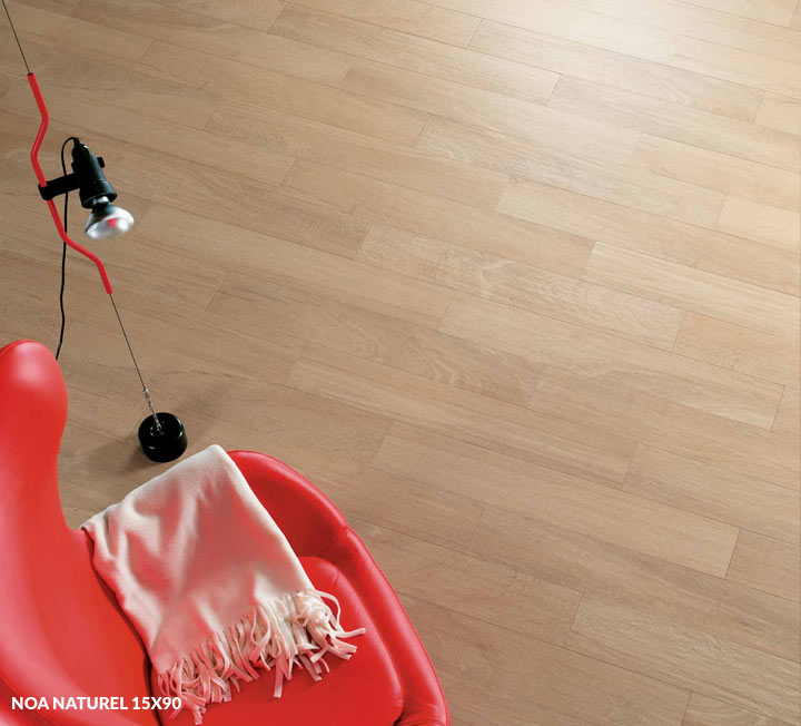 Wood, the coveted material which recalls nature, has become a must in many interior and exterior spaces thanks to its long-standing success. Who has never dreamt of laying parquet on the floor but was soon dissuaded by its heavy maintenance? However, there is an effective solution that combines the aesthetic appearance of wood with easy maintenance: wood look tiles, also known as ceramic wood or parquet tiles! Novoceram has created these floor and wall coverings in coloured body porcelain stoneware which have all the advantages of ceramic while offering a faithful reproduction of wood.