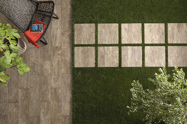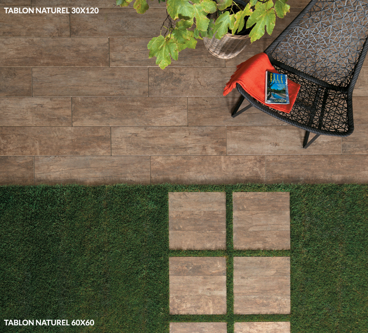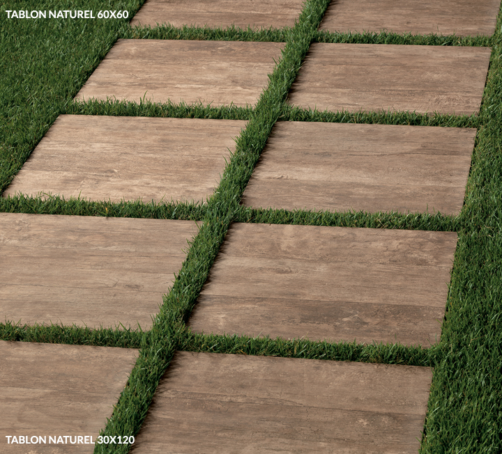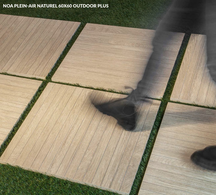 In addition, wood has several drawbacks when laid outdoors and requires, in that case, special and rather tedious maintenance in order to protect it from frost, bad weather or sunlight. However, Novoceram has widened the Outdoor Plus range by including wooden effect tiles with a 20mm thickness, which is preferably intended for outdoor use and is even suitable for laying methods without glue to prevent tiles from deteriorating if it is cold or rainy. The parquet effect tiles available in the Outdoor Plus range can therefore be laid using other techniques such as laying on grass, on gravel or a raised installation. These solutions leave space to install irrigation systems or pipes below the ground.