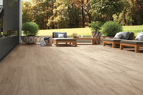Wood style tiles have a strong frost resistance and are weather-proof: they can be used outdoors without difficulty. Just make sure that, in terms of thickness and surface finish, you have chosen the right product for your intended use.