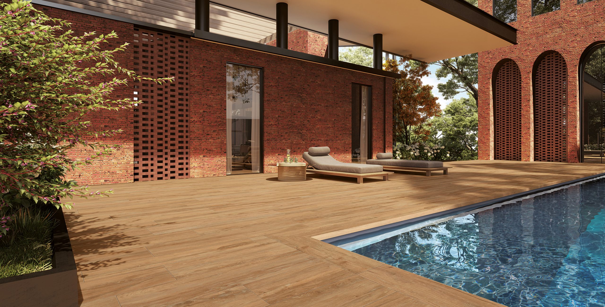 The possibilities are therefore endless: all spaces can have ceramic wood tiles and can incorporate these as a natural touch into your decoration. Outdoors, on your terrace, in your garden or swimming pool, or also indoors, in your living room or bathroom, it’s up to you to choose the most suitable wood look tiles for every room in the house!
