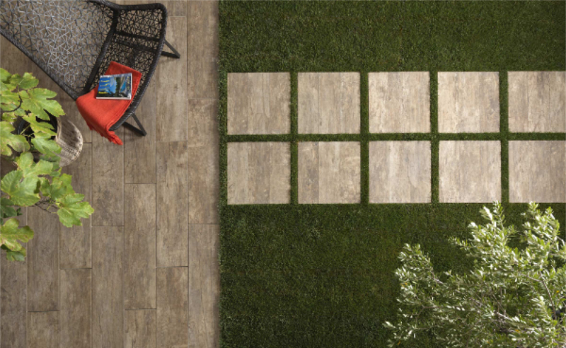 Another advantage of terrace wood look tiles to highlight is their high resistance to wear and tear. Unlike natural wood, porcelain stoneware can withstand intense foot traffic, especially on public terraces and outdoor spaces where this is a recurring situation. Ceramic tiles do not deteriorate and keep their initial look if regularly maintained.