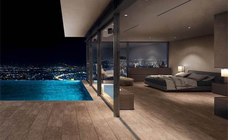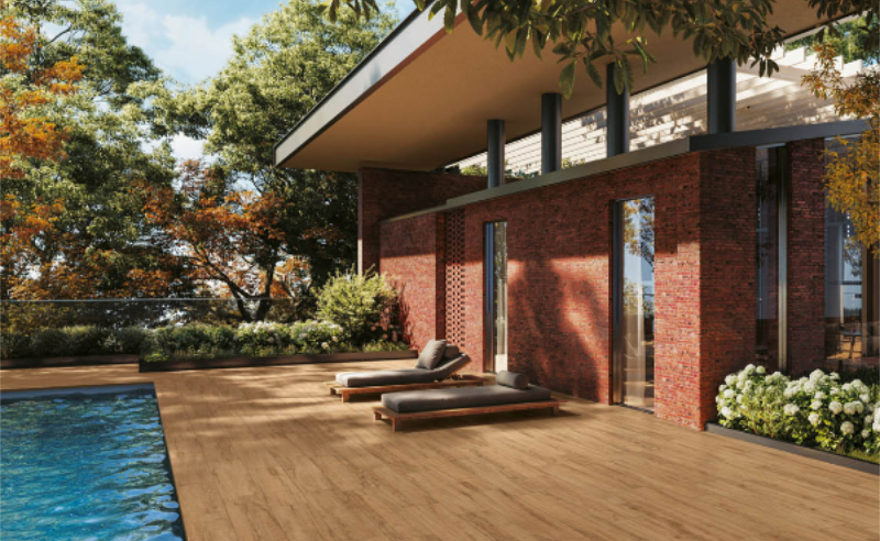 parquet effect pool tile will capture attention and become the star of your outdoor area!